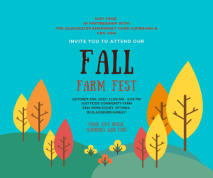 Fall Farm Fest 2025 – EVERYONE WELCOME! In partnership with: Gloucester Emergency Food Cupboard and the Eastern Ottawa Resource Centre Join us this Sunday, September 28th, 2025 from 11am-3pm at the Just Food Community Farm for our 4th annual Fall Farm Fest,located on unceded, unsurrendered